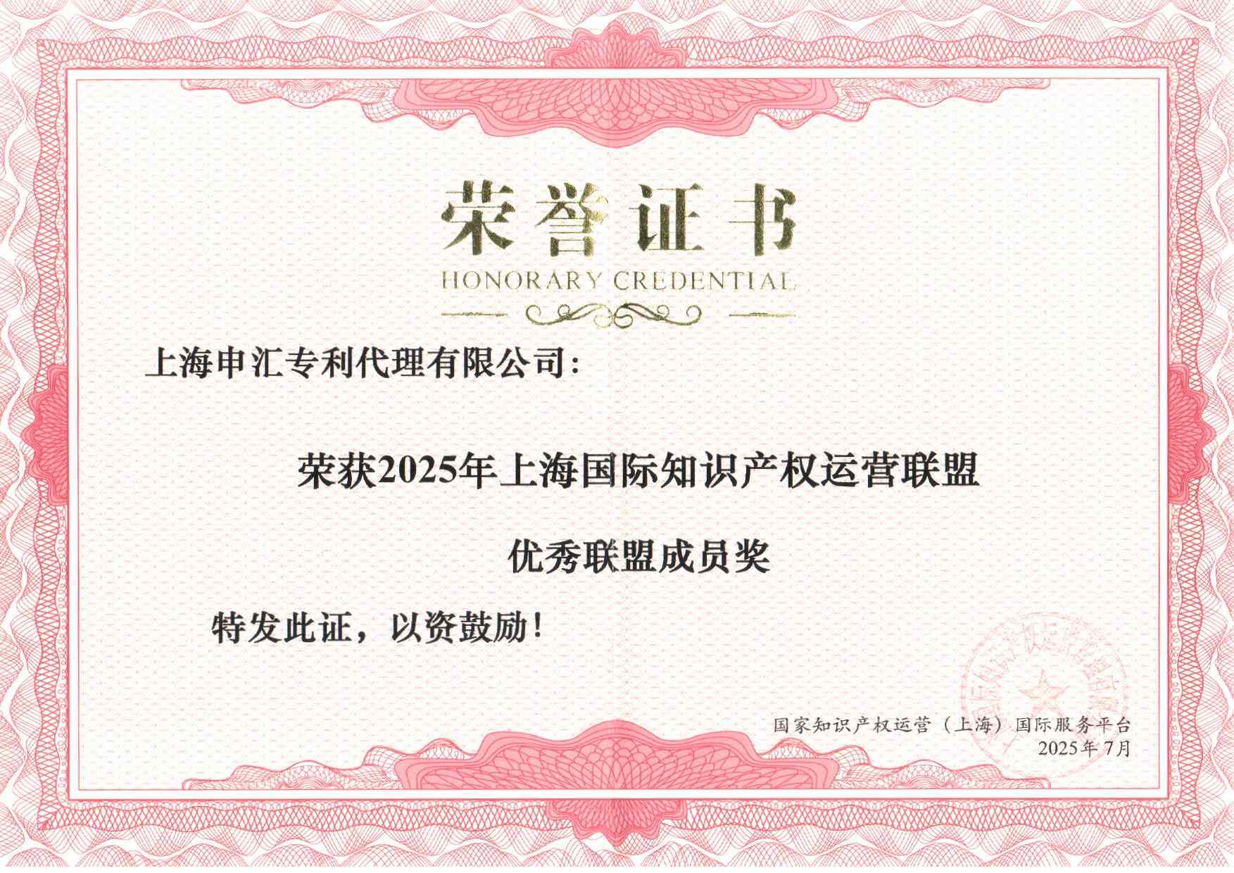 2025年上海國際知識產權運營聯盟優秀聯盟成員獎