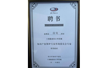 聘請徐俊擔任上海臨港松江科技城知識產權保護專家咨詢委員會專家